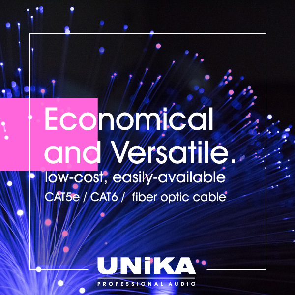 全部只需要一根網路線。Dante 摒棄了笨重而昂貴的類比或多工佈線,將其替換為廉價且十分常見的 CAT5e、CAT6 或光纖線纜,實現簡單、輕量,且經濟的解決方案。Dante 將您整個系統上的媒體和控制集成到了一個標準的 IP 網路上。